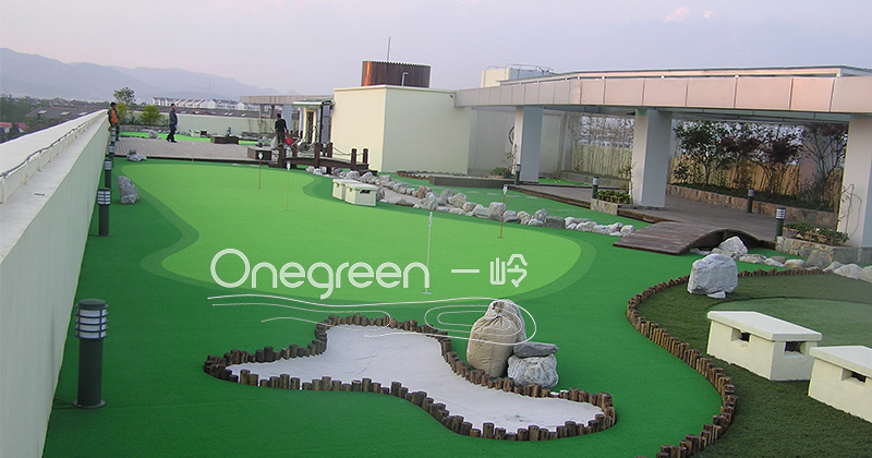 項目位于云南昆明,項目面積580㎡,項目由一嶺團隊負責設計及施工具有休閑、 娛樂為一體的人造草高爾夫果嶺。由3個人造草果嶺,一個環形沙坑和旱河,一個休息雅座和兩個打擊籠組成。這個項目的完成為企業大廈屋頂難開發難處理提供了完美的解決方案。一嶺引進國外先進技術和經驗,為市政公用、地產項目、度假村、賓館酒店、商業中心、私人會所等提供各種專業人造草果嶺和迷你高爾夫球場的設計與施工服務,精確再現真實高爾夫果嶺的特點。