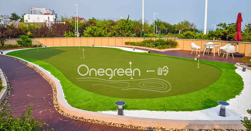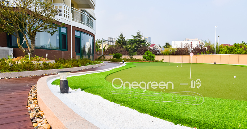 別墅果嶺項目面積150平方米,果嶺采用一嶺高爾夫研發的ASG板和高爾夫專用草皮鋪設而成。果嶺造型設計了5個洞杯,滿足短直推、長直推、上坡推和下坡推各種練習推桿需求。